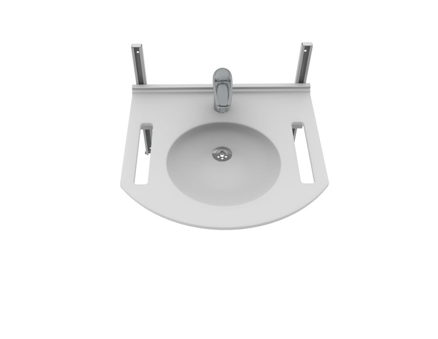 - Rullstolsanpassat tvättställ med grund bassäng och integrerade stödhandtag